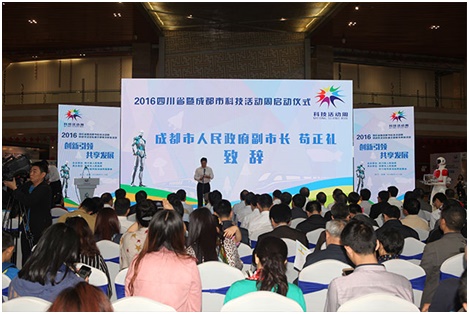 5月14日上午举行了“2016年四川省暨成都市科技活动周启动仪式”,省科技厅厅长刘东介绍了四川省科技活动周的有关情况,成都市人民政府副市长苟正礼致辞,省政协副主席陈放、省政府副秘书长罗治平共同宣布2016年四川省暨成都市科技活动周启动。