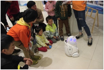 以下三张图片(图5、6、7 ):机器人展示吸引了大量市民、中小学生及科技工作者参观体验。